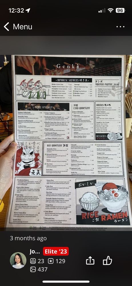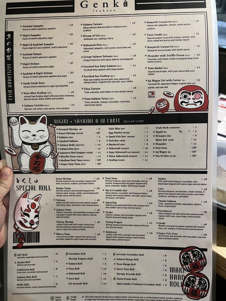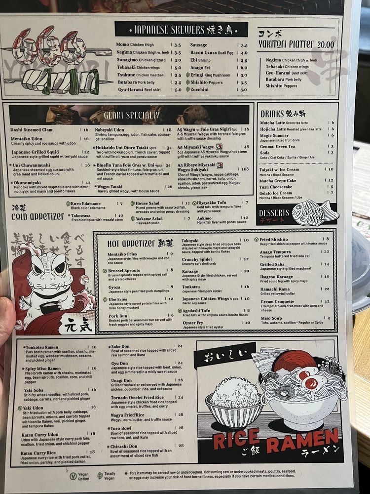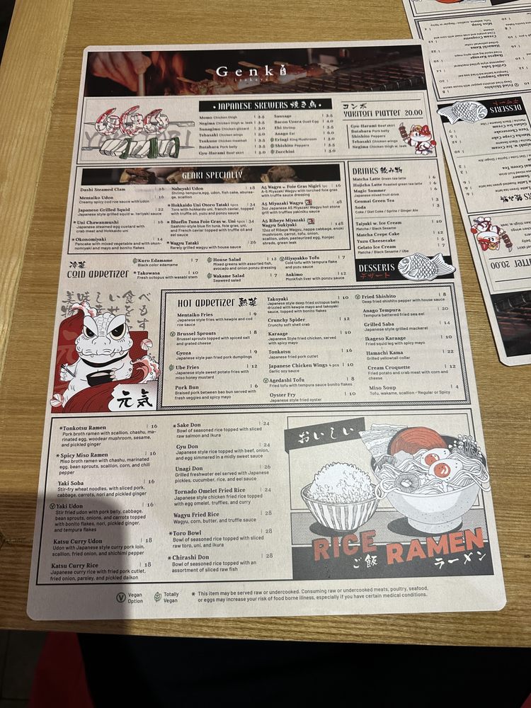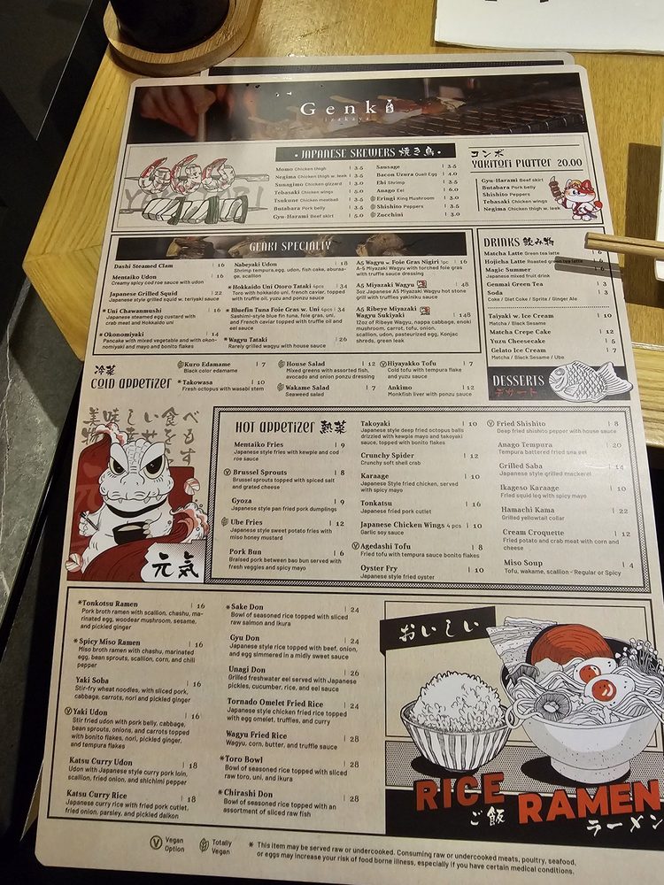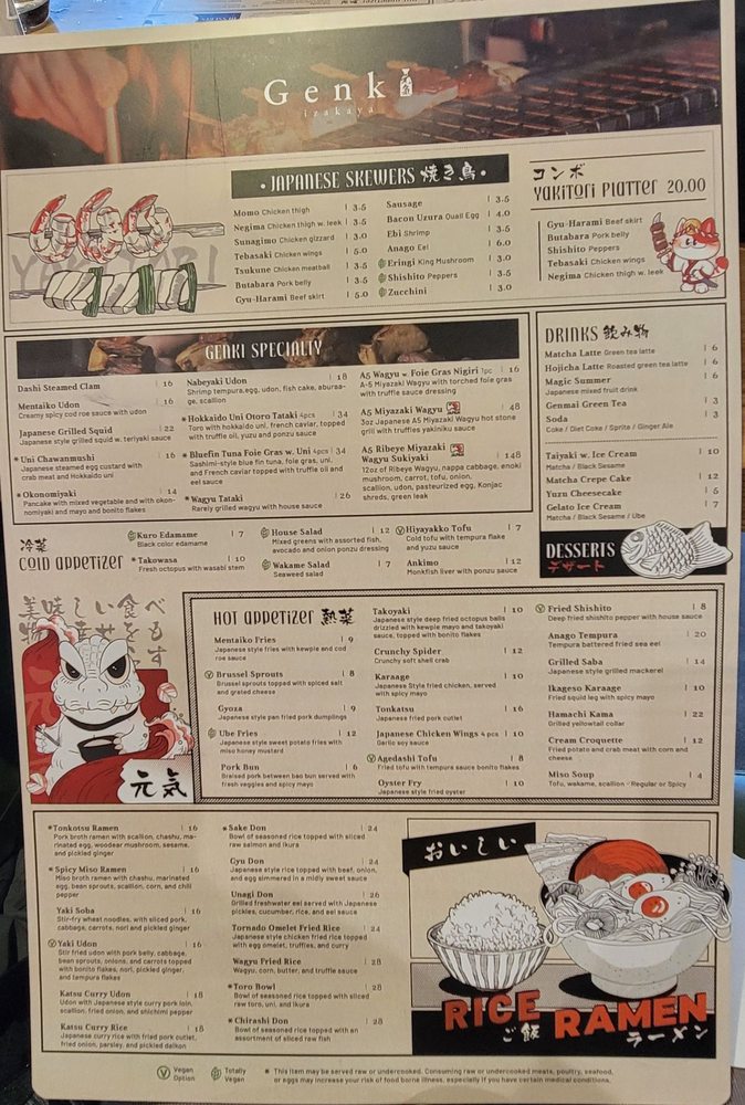 Genki Izakaya, located in Fairfax, VA, offers a unique blend of Japanese flavors in a cozy, trendy atmosphere. With a diverse menu that includes skewers, appetizers, sushi, and specialty drinks like the U-bae killer, this spot caters to those seeking an authentic Japanese dining experience. Customers rave about the Yakitori platter, Torched Sea Fatty Salmon, and Mentaiko Udon, highlighting the quality and bold flavors of the dishes. The ambiance is vibrant and lively, with attentive service and a welcoming staff. While the parking may be limited, the overall dining experience at Genki Izakaya is worth the visit for those looking to indulge in delicious Japanese cuisine.